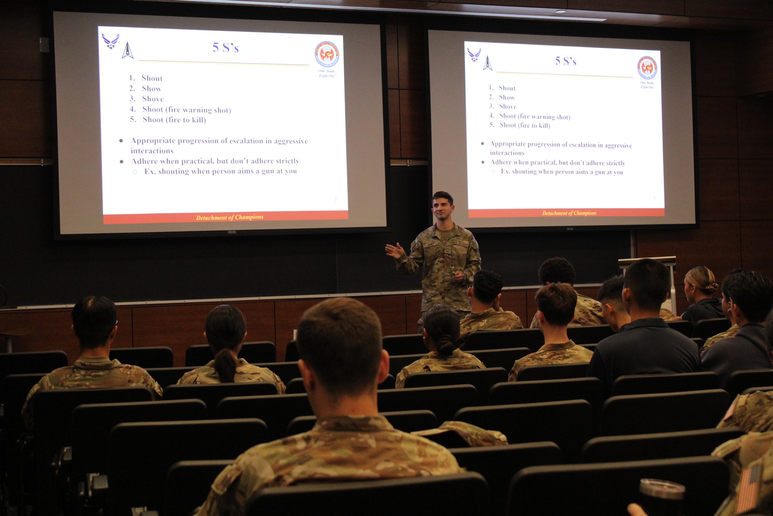 AS Class is an in-classroom style course that each AS-level student takes. Beginning with AS100 year, students build their knowledge of the Air Force Doctrine, working their way to AS200 year which focuses on the progression of Air and Space Power. AS300 year delves into team management and professional knowledge that accumulates in AS400 year when cadets take to broader issues of national security and understanding how their position in the Air or Space Force operates.